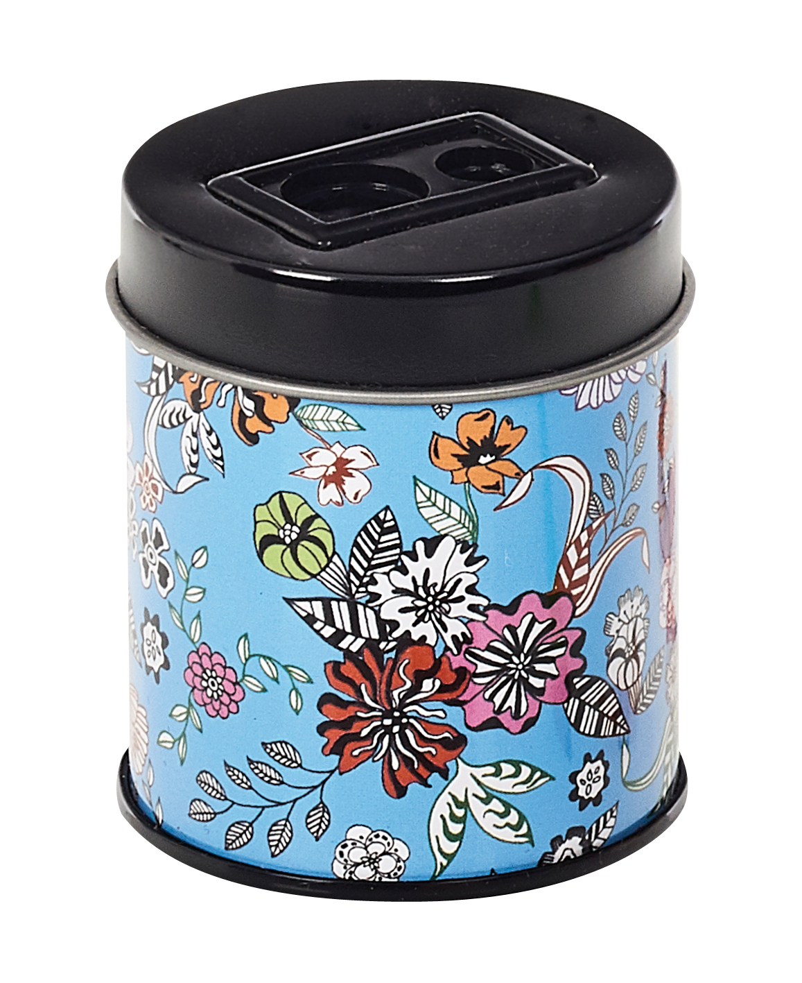 Dvojité ořezávátko na menší a větší tužky s motivem květů v modro bílé barvě.