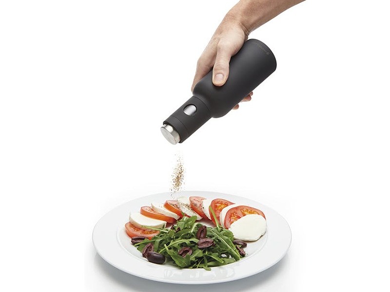 pomocí elektrického gravitačního mlýnku na sůl a pepř MasterClass můžete jídlo ochutit jednoduchým nakloněním jednou rukou. Chytrý mlecí mechanismus s možností naklonění umožňuje snadno dochucovat potraviny jednou rukou při více činnostech v kuchyni, ať už připravujete saláty, nebo vaříte zapékané pokrmy či pikantní kari. Protiskluzová úprava Soft-Touch zajišťuje pevné uchopení a elegantní matný černý design znamená, že skvěle vypadá i na stole. Po použití ji jednoduše položte zpět na pracovní desku nebo stůl - design bez nečistot zajistí, že přebytečná koření, sůl spadne zpět dovnitř přístroje, a ne na povrch