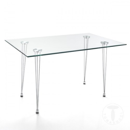 Stůl z tvrzeného skla o tloušťce 10 mm a nohy z chromovaného kovu.Rozměry: 75 x 130 x 80 cm Italský design plný elegance a originality, to je Tomasucci, italský výrobce designového nábytku a bytových doplňků. Designéři se snaží o to, aby každý navržený výrobek byl nejen dekorativní, ale i funkční... celý popis
