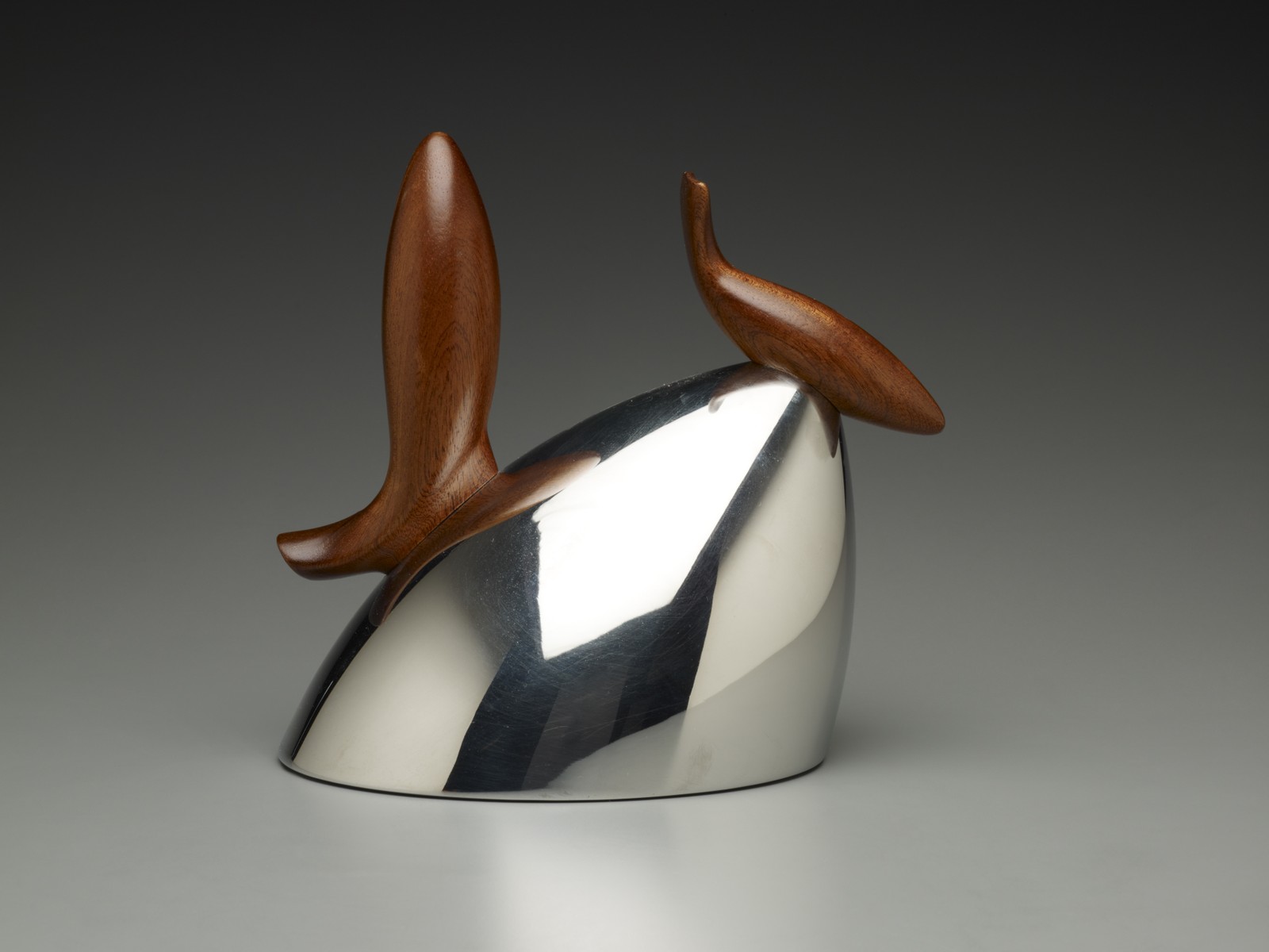 Konvice z nerezové oceli 18/10 s melodickou píšťalkou z mahagonového dřeva od designéra Franka Gehry.