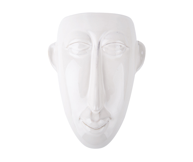 Nástěnný dlouhý květináč ve tvaru obličeje.