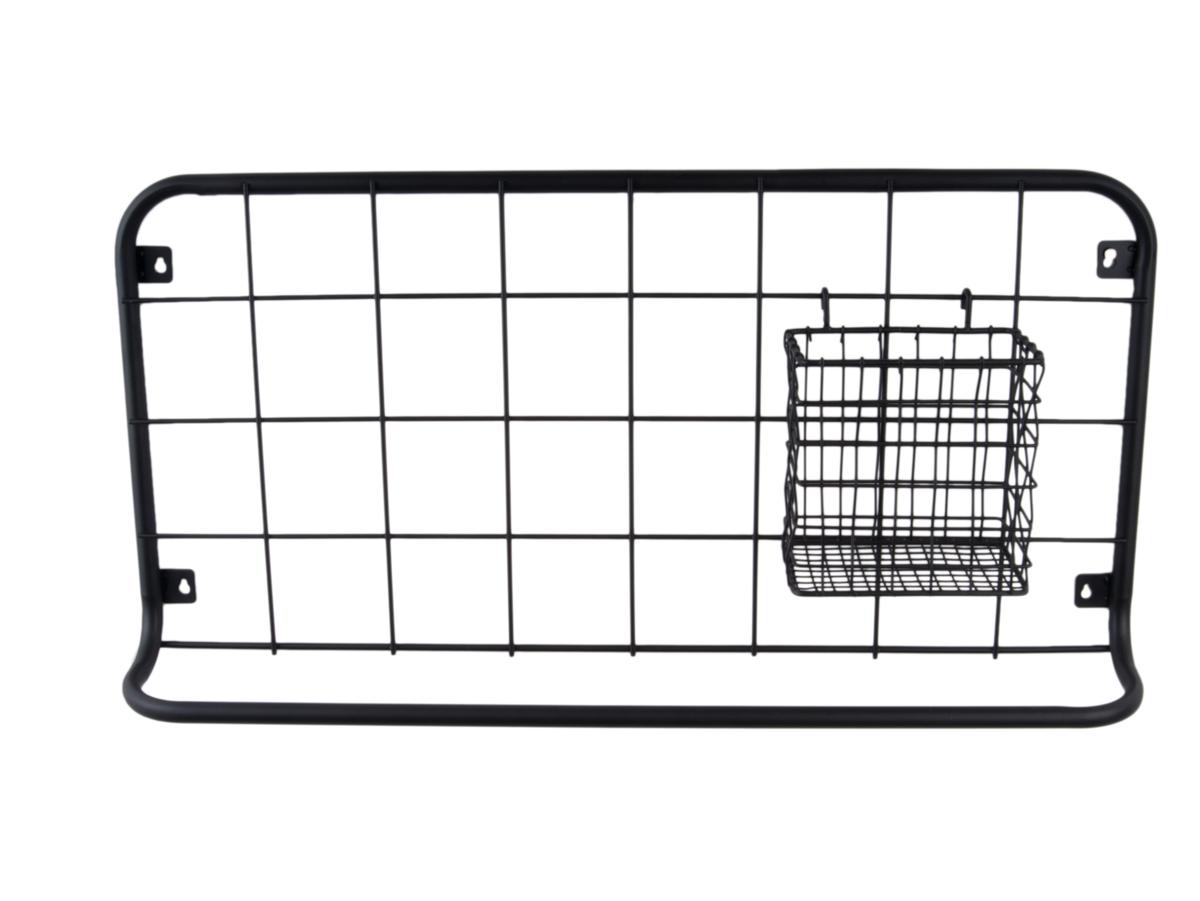 Materiál: kovová černá mřížka, 5 háčků, 1 košík