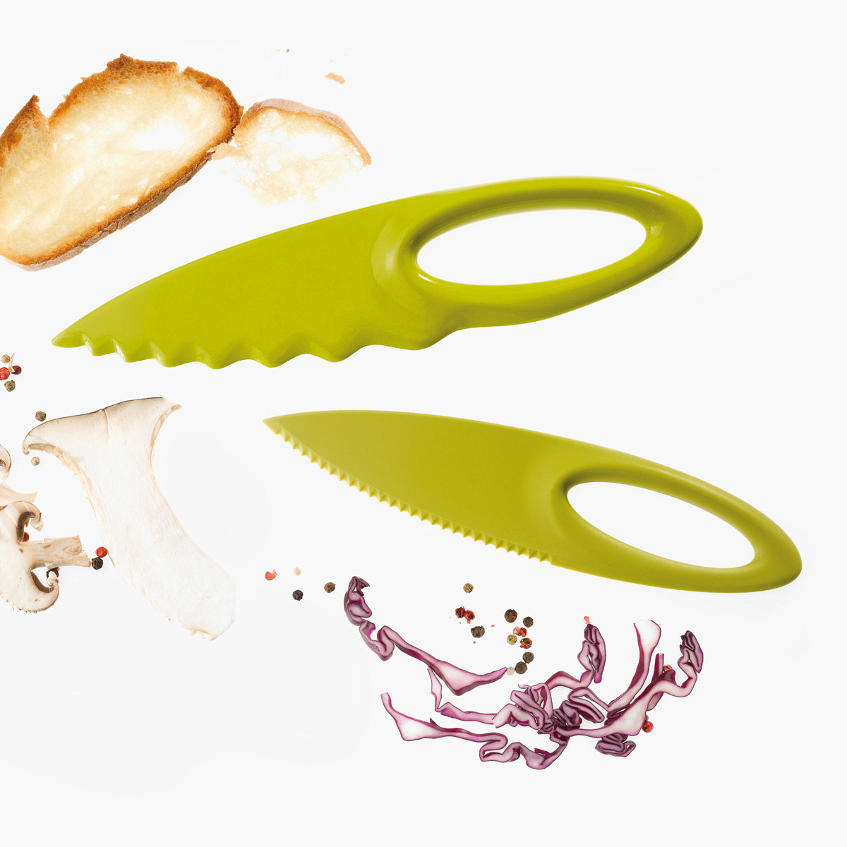 Tento nůž je ideální na krájení pečiva ale i salátu a neničí vitaminy v ovoci a zelenině při krájení. Je vyroben z plastu, ale nebojte opravdu krájí a nemusíte ho nikdy brousit.