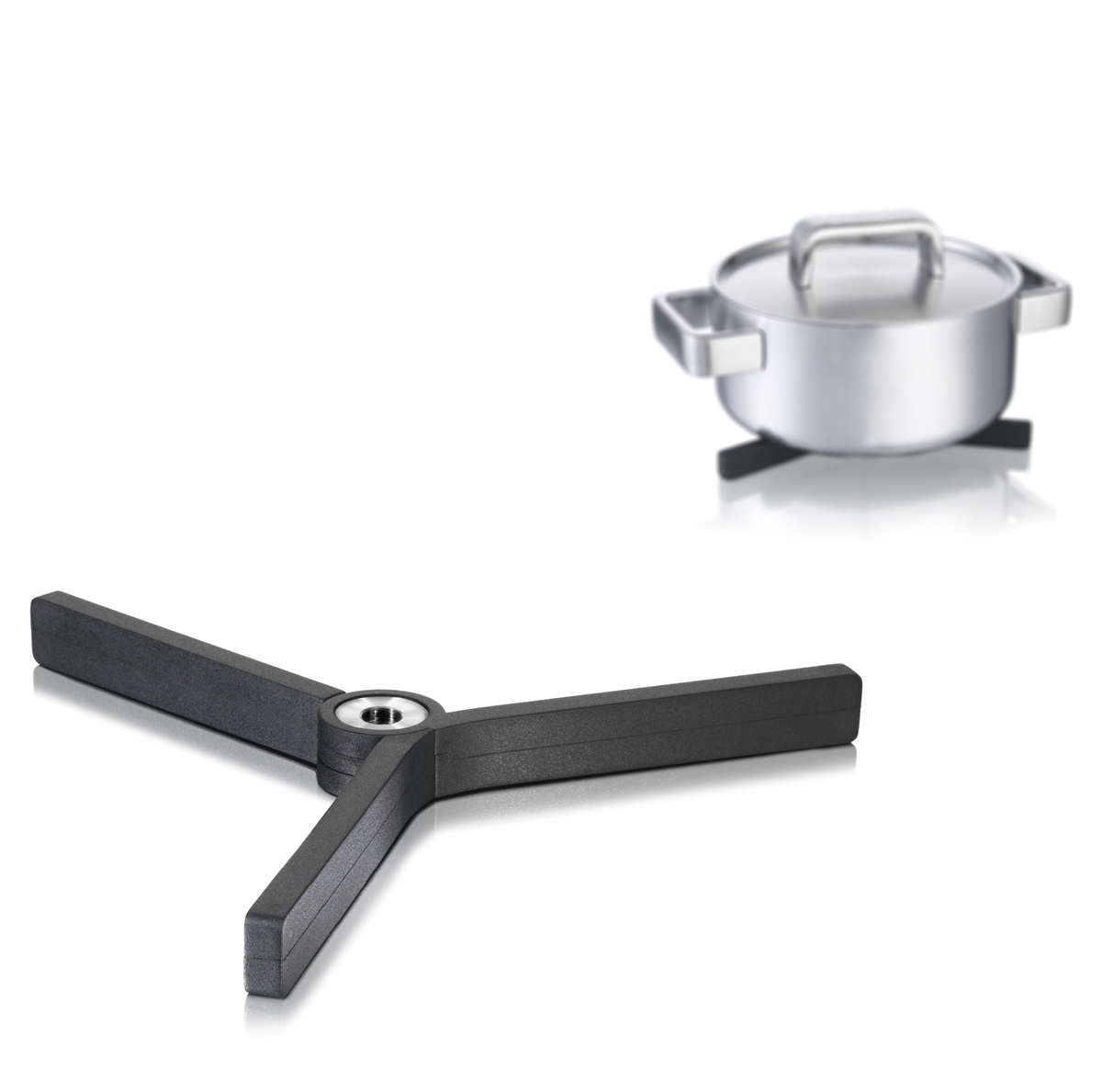 Ušetřete místo v zásuvkách díky skládacímu trojnožce Vacu Vin. Trifold chrání váš stůl před zdroji tepla, jako jsou horké hrnce a pánve. Po použití Trifold složte pro snadné skladování. Ve složeném stavu je Trifold v současnosti nejmenší trivetou dostupnou na trhu.