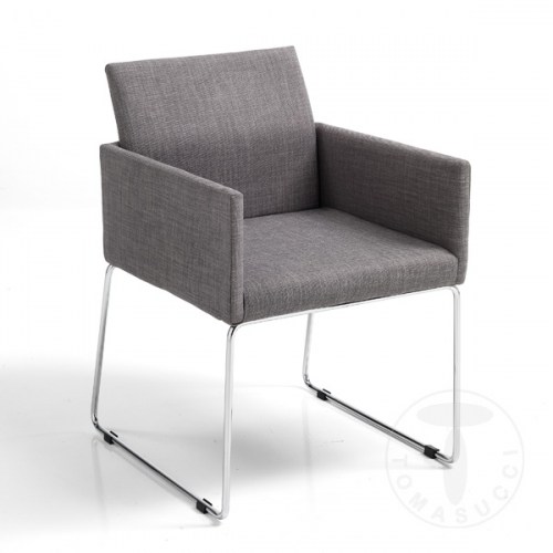 Židle z šedého látkového čalounění. Chromovaná kovová konstrukce.Rozměry: velikost židle 80 x 55 x 60 cm, výška sedadla 48 x 46 x 47 cm, výška loketní opěrky 65 cmItalský design plný elegance a originality, to je Tomasucci, italský výrobce designového nábytkua bytových doplňků. Designéři se snaží o to, aby každý navržený výrobek byl nejen dekorativní,ale i funkční.Made in Italy