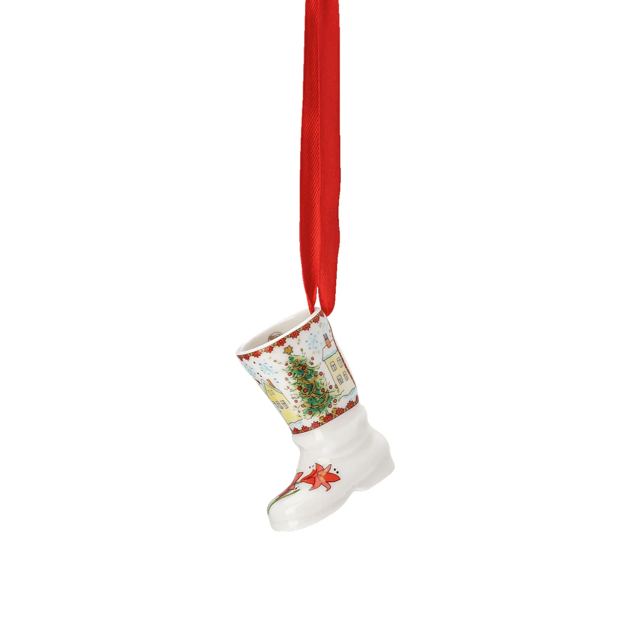 Vánoční miniozdobu v podobě malé porcelánové holínky využijete nejen jako závěsnou na stromeček. Můžete si ji pověsit i na větvičky ve váze nebo třeba ozdobit adventní věnec či zabalený vánoční dárek nebo s ní vyšperkovat slavnostně prostřený stůl.