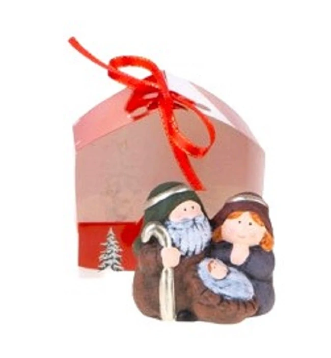 Keramický Betlém v kartonovém domečku.