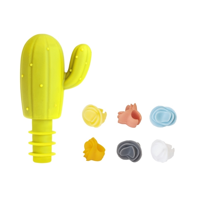 Sada na víno Cactus s lahví a 6 silikonovými popisovačů VIGAR